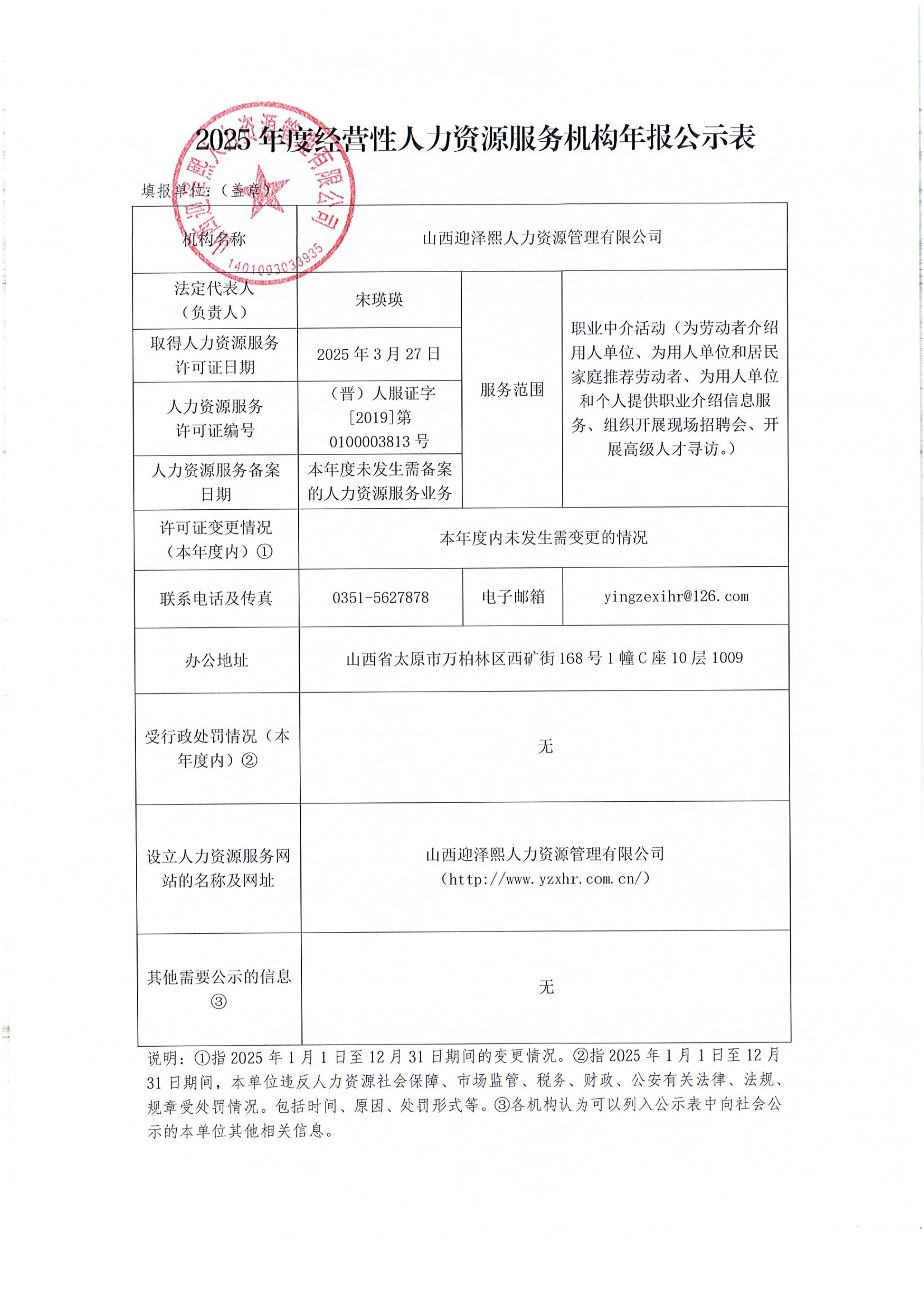 2025年度经营性人力资源服务机构年报公示表